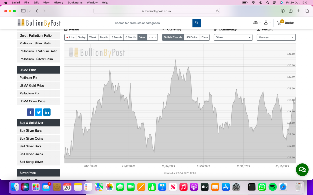 A simple option may be to purchase silver at a lower cost, again if we look at the following chart the price has gone from £ 16.52 to 19.17 per Oz an increase of 16% in a short timeframe.