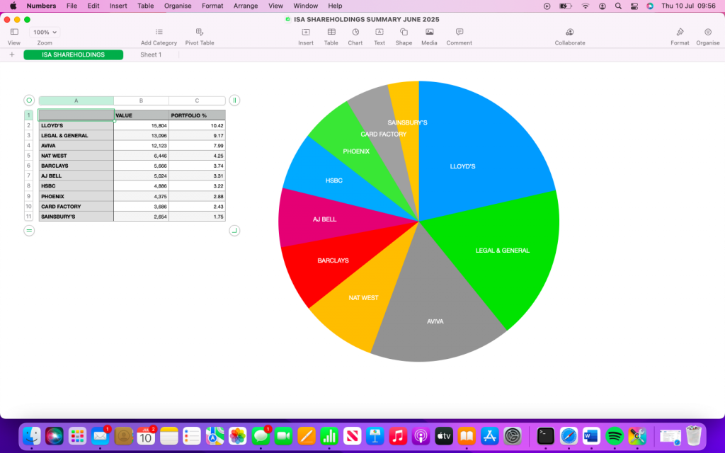 Illustration of the shares that I currently hold with my tax efficiency ISA wrapper.