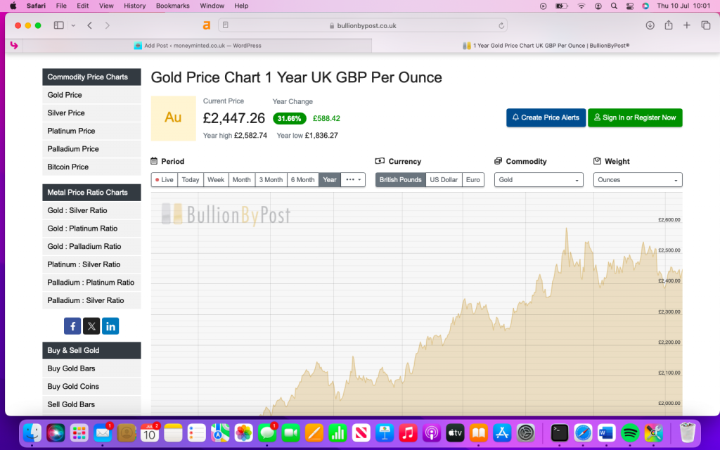 As we can see from the follow chart, the price of gold has gone up to £ 2,447 per Oz an increase of 31% over the past 12 months.